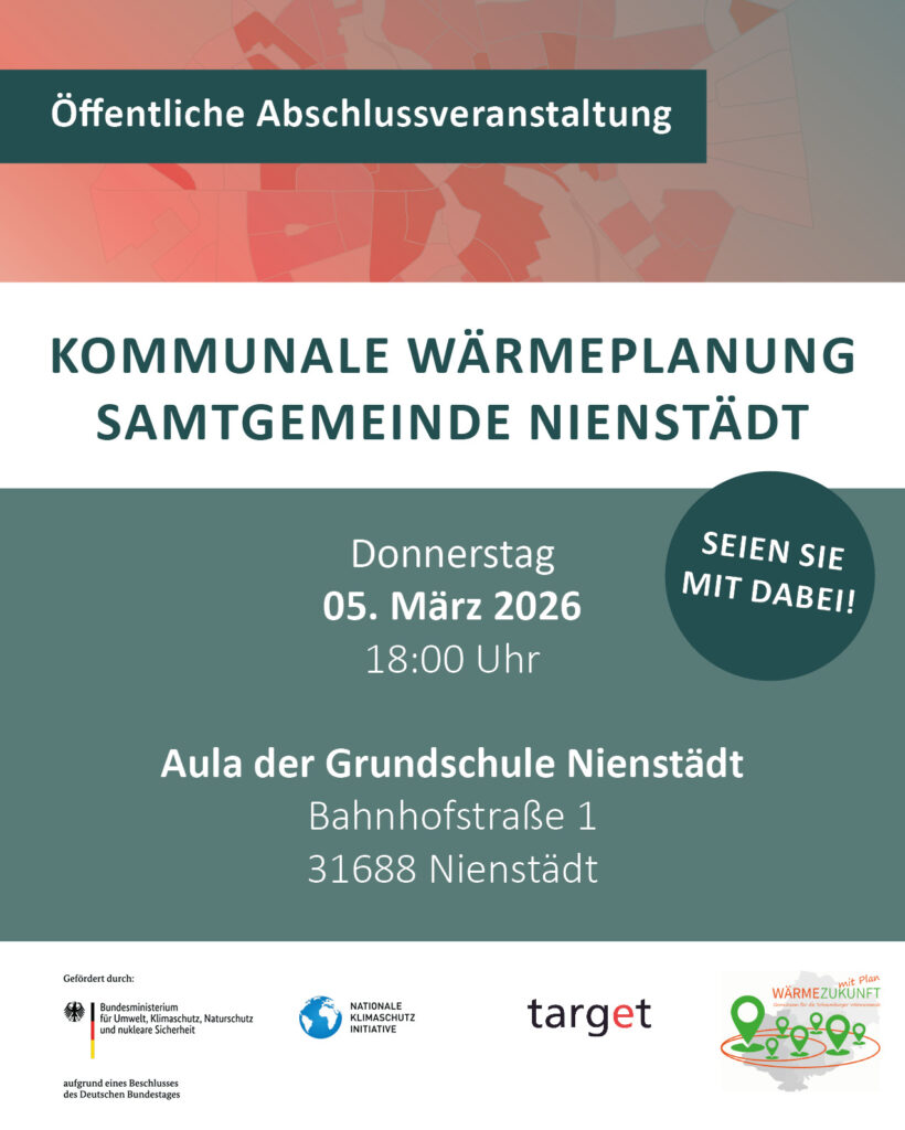 Bürgerinnen und Bürger sind zur Abschlussveranstaltung eingeladen Am Donnerstag, 05. März 2026, um 18:00 Uhr präsentieren die Projektpartner in der Aula der Grundschule Nienstädt (Bahnhofstr. ...