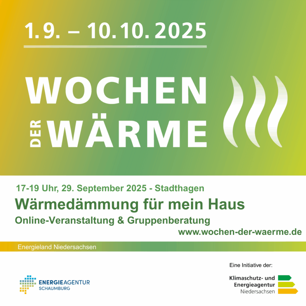 Am 29. September 2025 von 17:00 bis 19:00 Uhr bietet die Energieagentur Schaumburg in Kooperation mit der Klimaschutz- ...